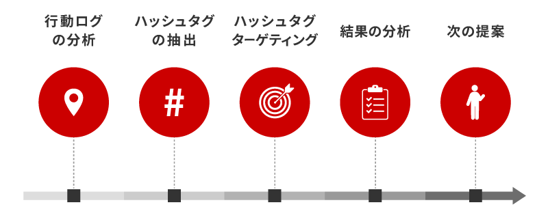 配信前の「0次分析」によるターゲット発見から、 親和性の高い層へのピンポイント配信までを一貫して行います。